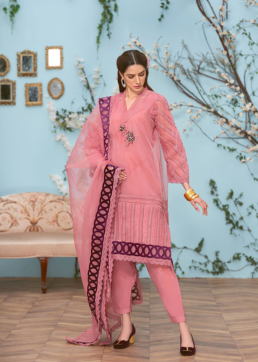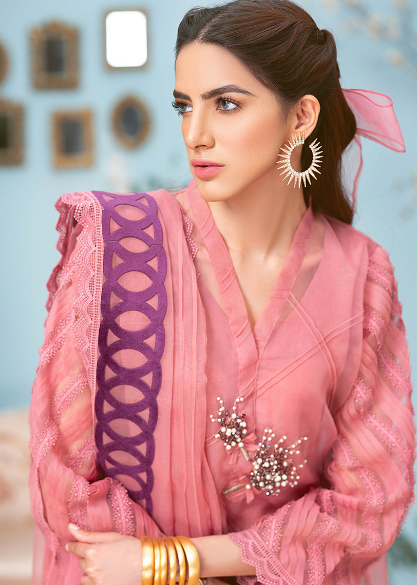 This phalsa ,sorbet pink, sheer organza outfit is a definite must have this summer.