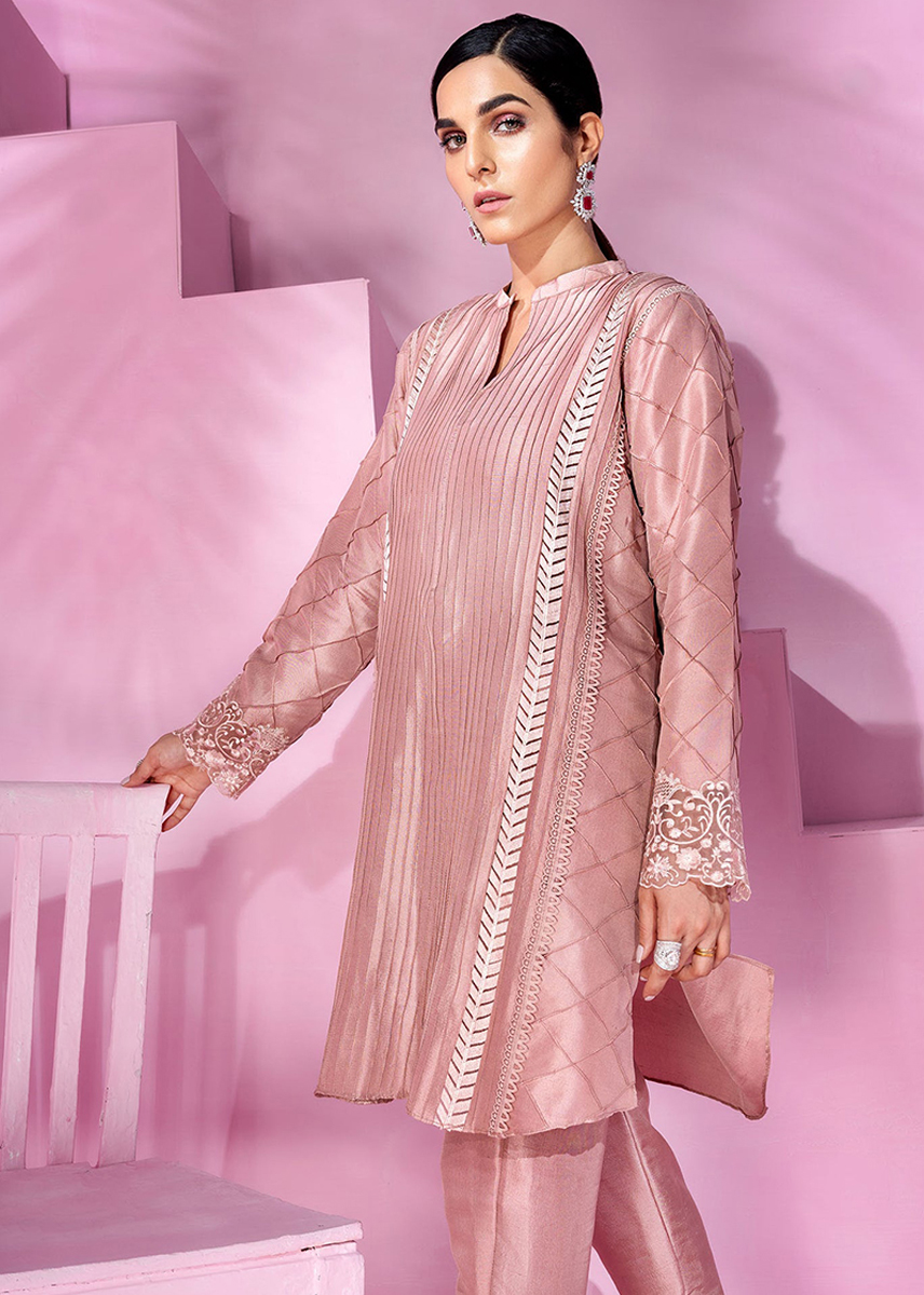 Pure raw silk with fine lines created with top stitch lines paneled with white lace.