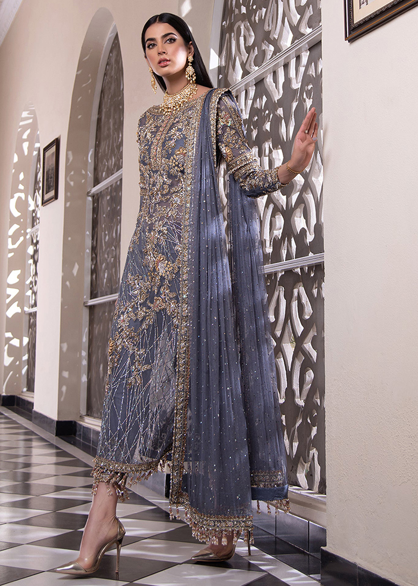 Mauve is a finely crafted apparel with an ornamentation of embroidered motifs and criss cross spread across the shirt designed with beaded tassels on the dress marking its style statement.