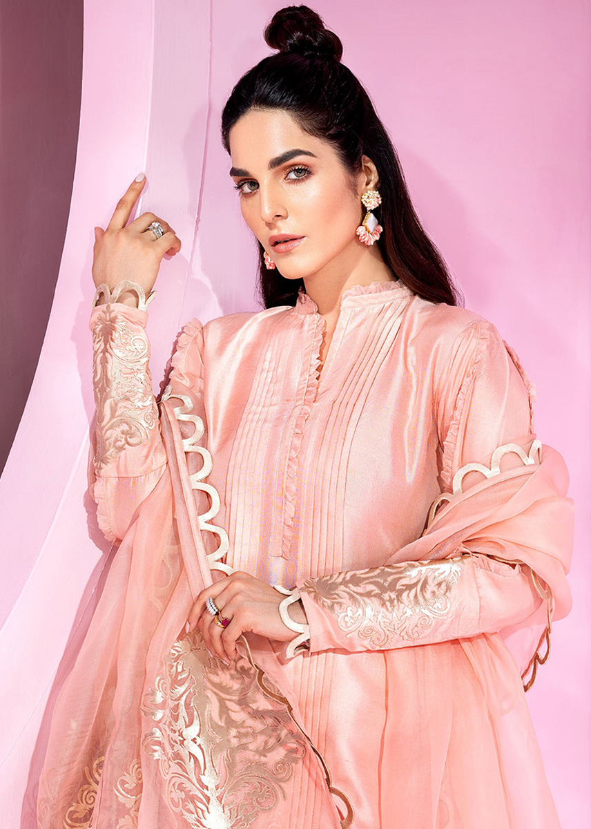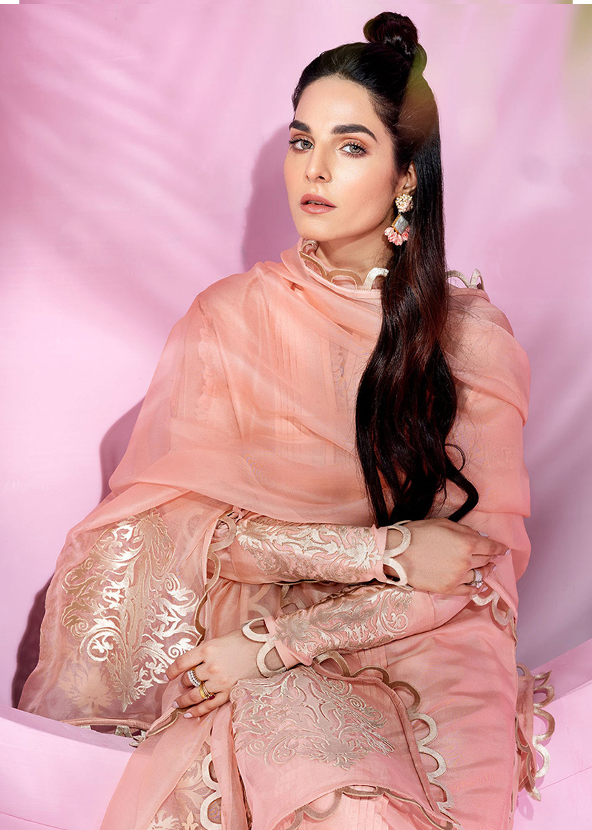 Dupatta: Pure organza dupatta with scallops (4 sides) and cut work motifs (2 sides)