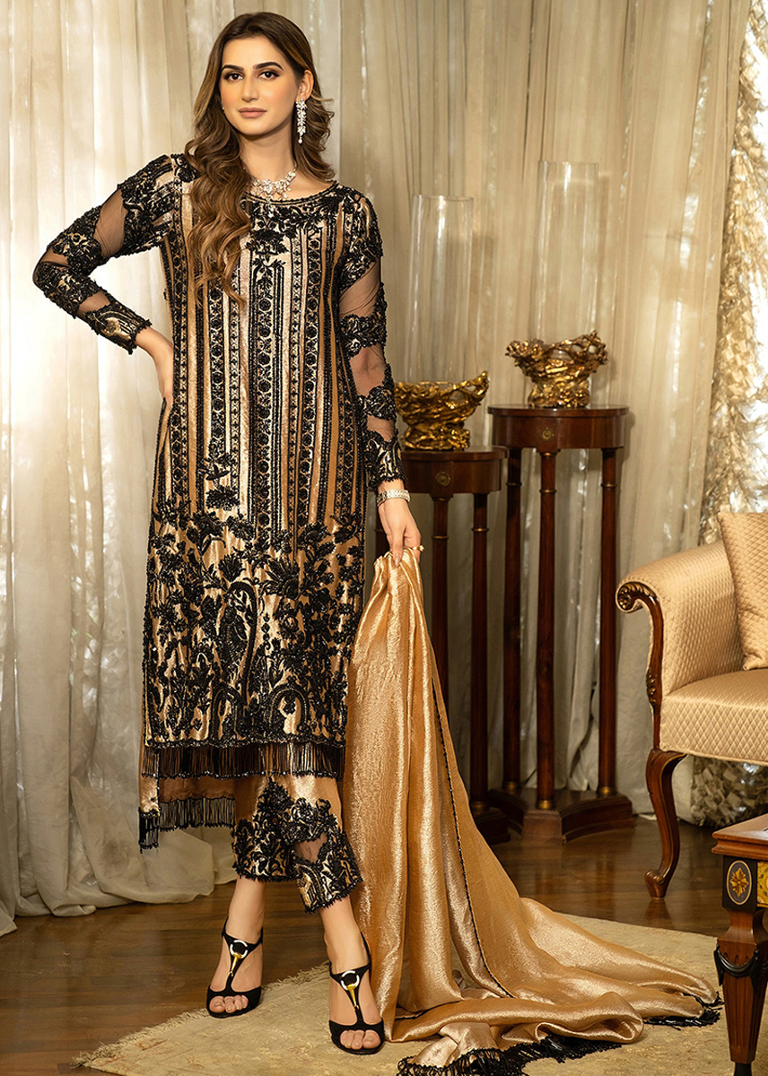 A mélange of black and gilerty golden hues covered with intricate embellishments that wink at you from the day through the night.